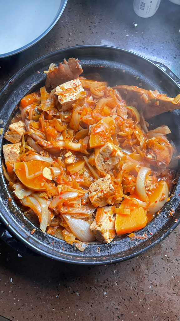 Kimchi and Veg Stew is a hearty dish that highlights the bold flavours of kimchi alongside a variety of vegetables. This stew is often enjoyed as a comforting meal, particularly in colder weather, and can be easily customized based on available ingredients. This quick and easy weeknight dinner is ideal for utilising leftovers from your fridge. It can also be prepared in a heavy-bottomed pot with a lid. For added heartiness, consider incorporating chicken thighs, pork, and a splash of fish sauce to enhance the flavour.